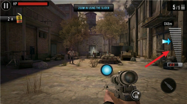 3、战斗过程中能够切换各类武器进行作战,拖动右侧的按钮就能开启瞄准镜。