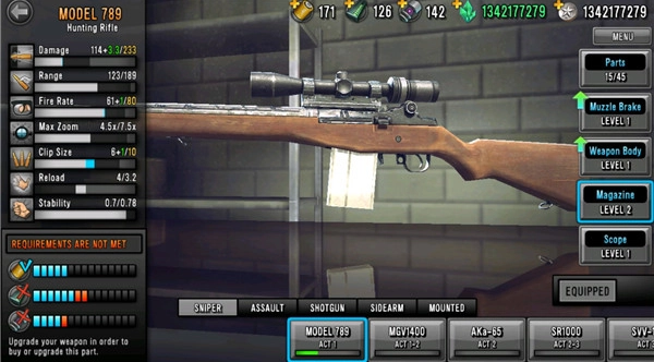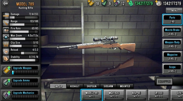 4、这里有不同类型的狙击枪,你可以去商店选购自己喜欢的,同时还有各种型号的子弹可供选择。