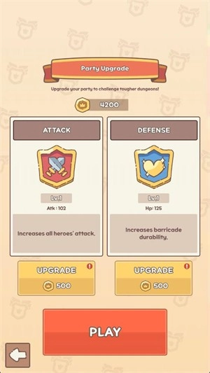 6、在主界面点击“upgrade”按钮可消耗金币完成升级操作,点击英雄选项则能对角色开展升级。