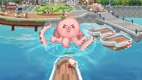 5、第一次进入奥比岛的时候,会有一只章鱼怪兽来攻击你的小船。