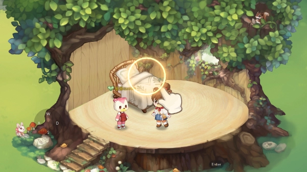 完成上述所有操作后,你就能在这座岛上拥有一间专属的小树屋,屋里还配备了一张小床,点击这张床就能上床休息了。