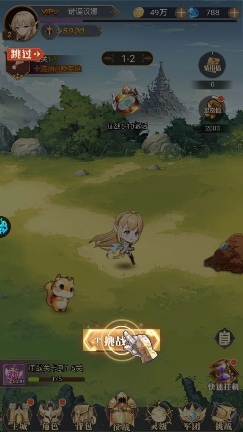 3、接着将招募到的英雄添加至己方队伍,通过提升英雄等级、为其穿戴装备的方式能够增加属性。