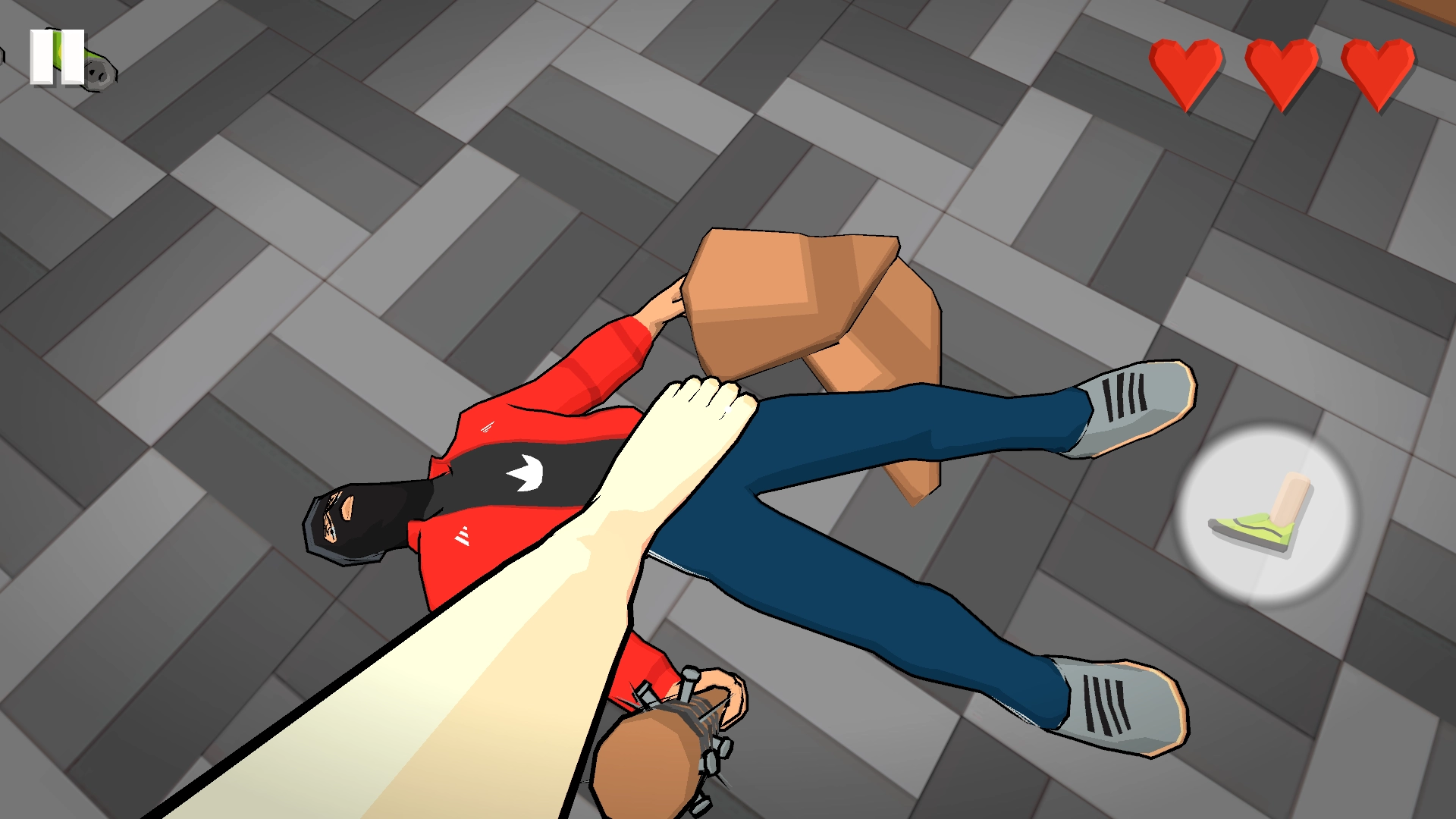 2、遇到的敌人,你一脚就能将其踹死,但要小心别被攻击到,你总共只有三条血