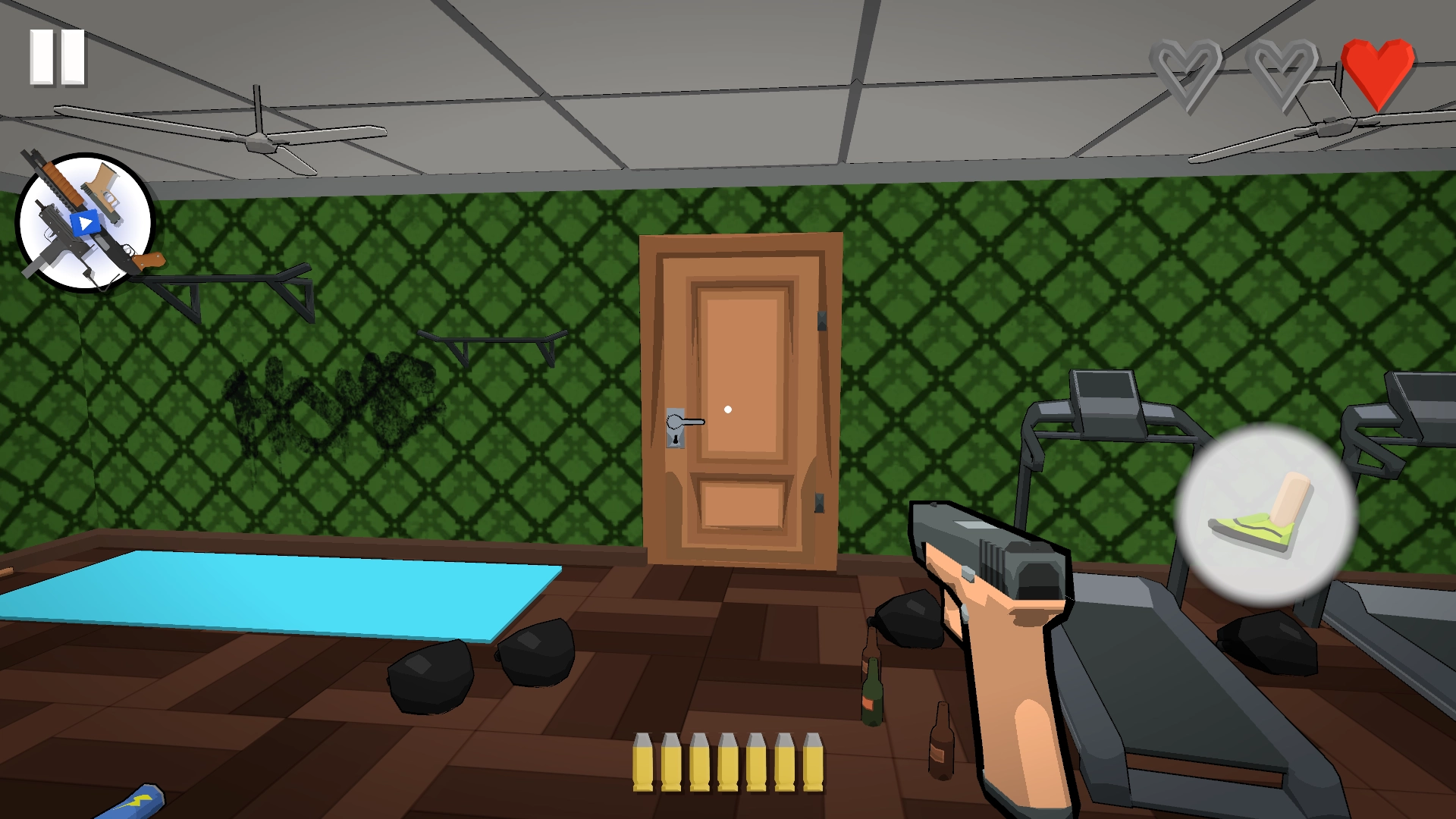 1、在本站好游戏进入游戏后,你可以用脚把门踹开