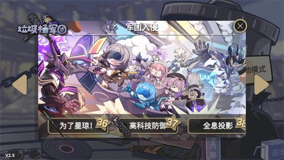 《垃圾桶军团》2.5.6最新版本是基于《崩坏:星穹铁道》创作的同人游戏。在游戏里,玩家需通过放置角色的方式,对抗从右侧出现的敌人;每个角色都拥有独特的技能可供施展,同时还能对角色等级进行提升,助力玩家更有效地守护己方区域。感兴趣的玩家不妨前来体验游玩!