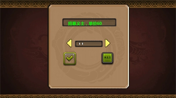 11、招募士兵需要资金支持,大家根据自身实际情况来安排就好,前期先招收30个士兵足够了,正好能对应前、中、后三个阵型,每个阵型分配10个士兵。