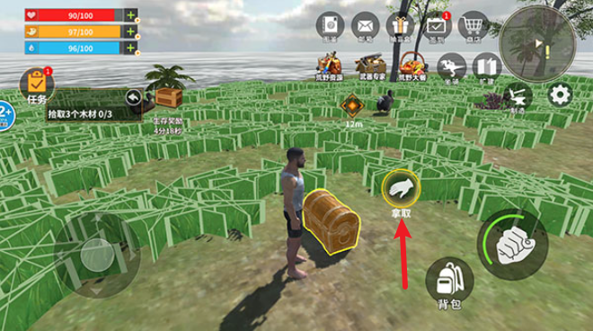 4、就像地图上分布的各类宝箱,开启后会获得若干物资,背包空间足够时能全部拾取,也可以挑选所需的物品放进背包。