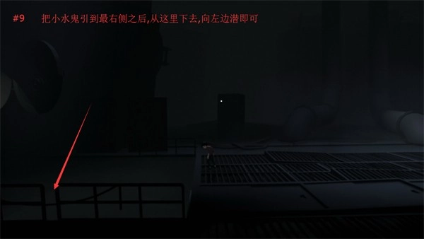 9、把小水鬼引到最右边后,从图中所示的位置下潜,再往左边游过去