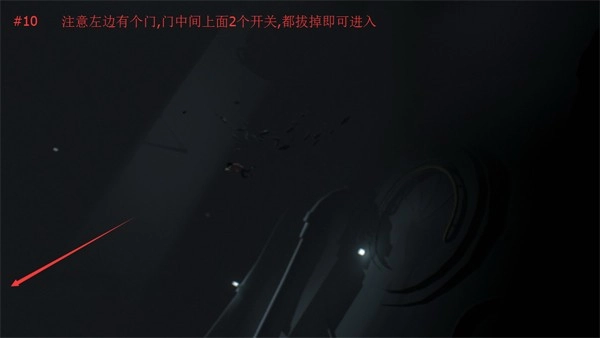 10、请注意左侧有一扇门,门的上方装有两个开关,将这两个开关同时拔掉就能开启此门。
