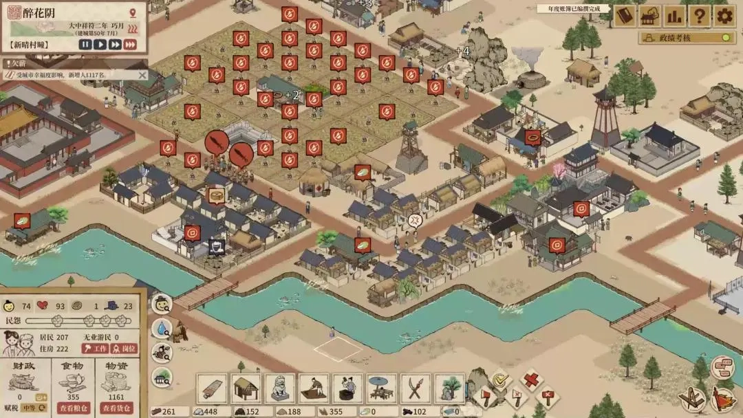 说实话,这款游戏着实难以用精准的词汇来界定。它融合了开罗游戏的建造模式、环世界的资源管理以及些许塔防元素,甚至还包含判官断案这类内容……这般丰富多元的玩法,使得《满庭芳》的内容构成显得有些复杂。