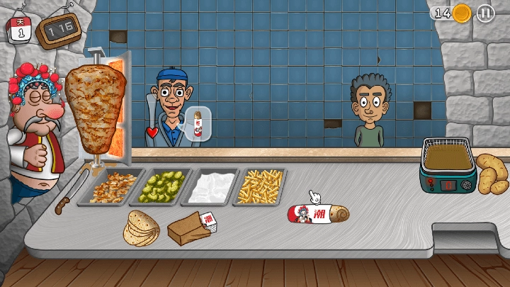 4、升级他们的商店以体验,沙威玛料理管理的经典玩法得以保留,但游戏中加入了丰富的中国元素。