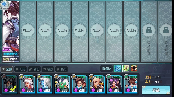 这一切都了解之后点攻击就进入了阵容选择界面,这个不用多说,大家都有自己练的伙伴,当然是上培养的好的了,建议坦克、奶妈、控制、输出都有的阵容搭配。