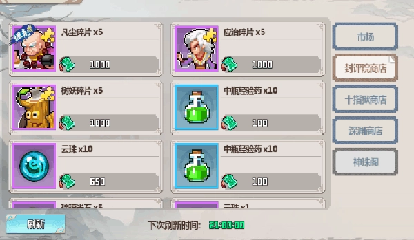 获得的战将玉牌可以在封评院商店换取伙伴碎片、材料、经验药水等,这里建议先换取喜欢的伙伴碎片最为划算。