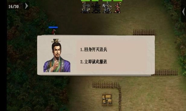 当决定暂时撤离时,那位独眼将领将与主公进行交谈,他会主动承担殿后任务并获得攻防与移动能力的提升。主公需尽快前往与那位名为徐荣的将领会面并触发对话,此时主公将陷入麻痹状态。后续只需让那位姓曹的年轻将领迅速赶来与主公对话,即可完成这一阶段的安排。