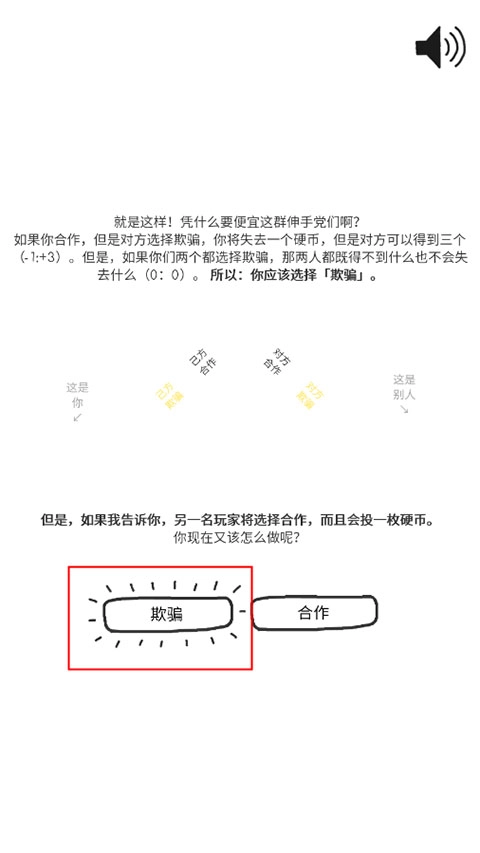 这个信任游戏,点击两次“欺骗”是正确答案;