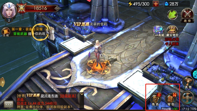 游戏的右下角能查看角色信息和背包里的物品。