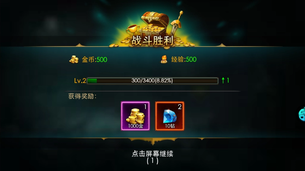 战斗胜利以后,可以获得金币以及经验奖励;