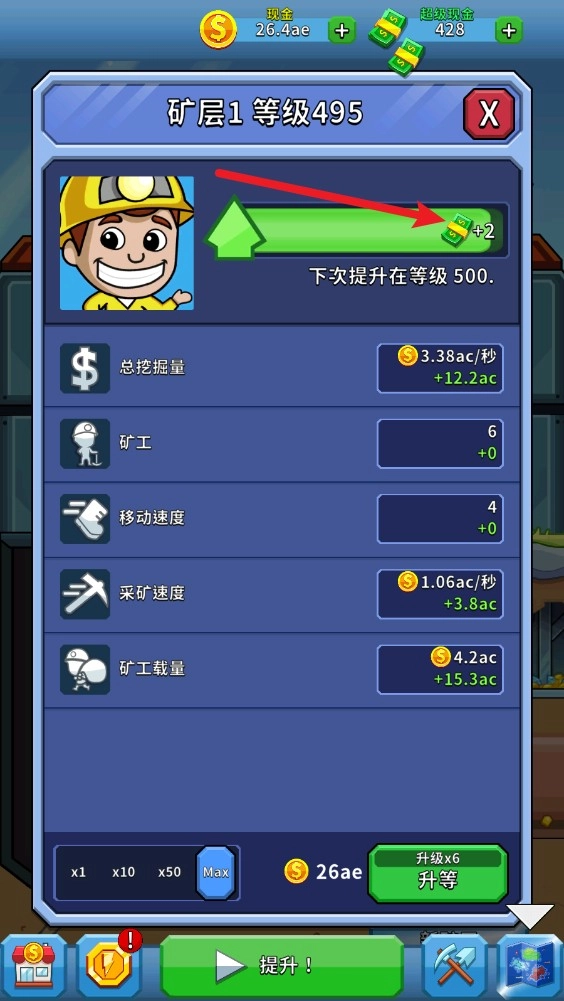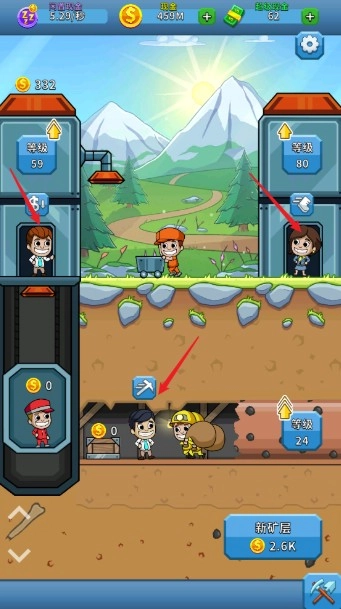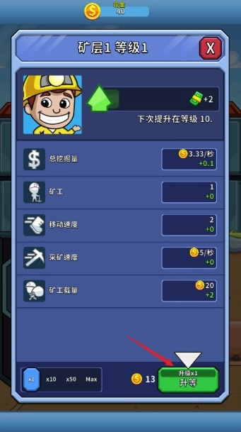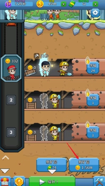 获得收入后,就能对矿工进行升级,以此提高他们的工作效率。