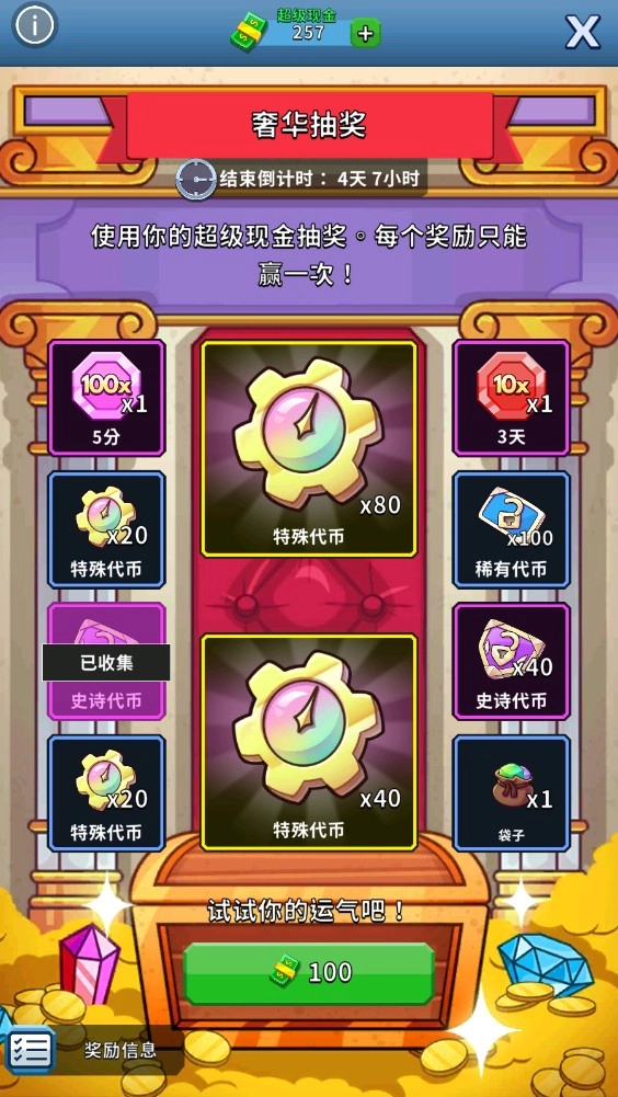有了超级现金就能来抽奖获得各种好看的工人皮肤。