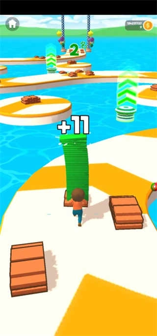 收集沿途的地板,搭建桥梁跨越水面,制造捷径直达终点!