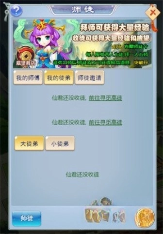 若想招收徒弟,角色等级要比徒弟高出三级以上,并且得消耗收徒令。每位师傅最多能收两名徒弟,徒弟则只能拜一位师傅。师徒关系确立后,就能进行传功,传授给徒弟大量经验。