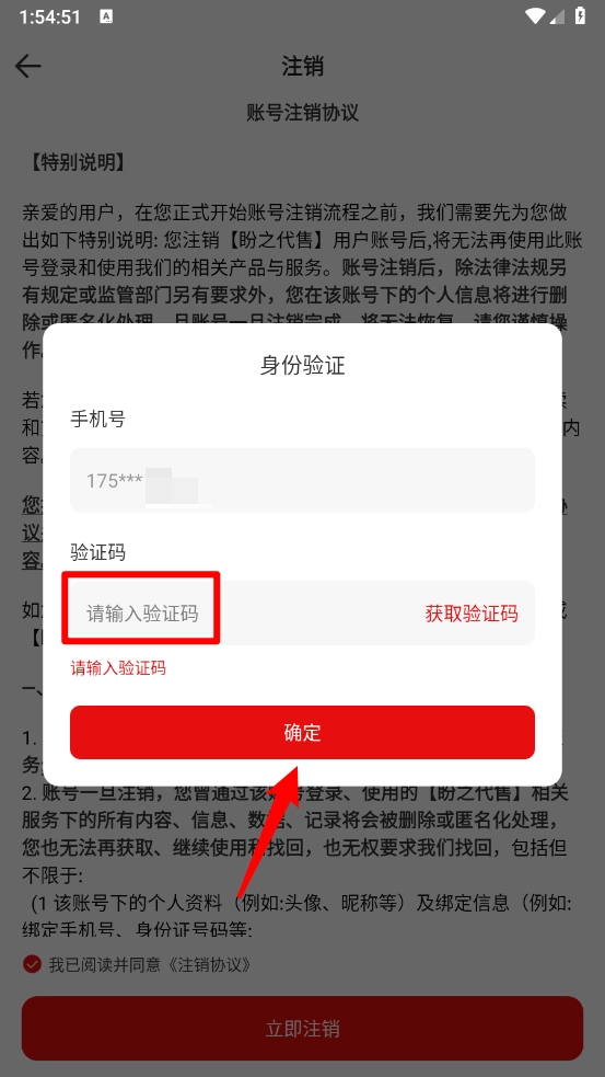 最后需要进行身份验证后,点击"确定"即可注销。