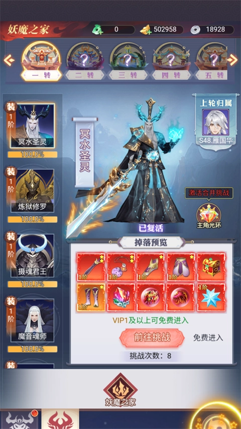 通关第二十五关即可解锁,这里有五位属性各异的妖王,每位妖王掉落的装备各不相同,玩家能够依据自身的属性来挑选要挑战的妖王。(温馨提示:每天仅有八次挑战机会。)