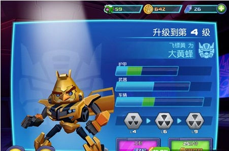 想知道跑车界谁最厉害?雪佛兰科迈罗化身的大黄蜂肯定是大家印象里最深刻的那个。给它升级能显著提升武器威力和车辆能量,前期咱们就需要高攻击力来快速通关,赶紧用金币把它升到3级,这样就能赚到绿色猪头了。