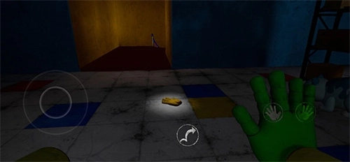 3、睁眼醒来时,发现自己身处一个完全陌生的世界,周围散落着各式各样的玩具。左下角有个按钮,能操控角色随意移动;右侧的图标分别对应左右手掌,方便拾取物品。不过目前只有绿色手掌可以使用。