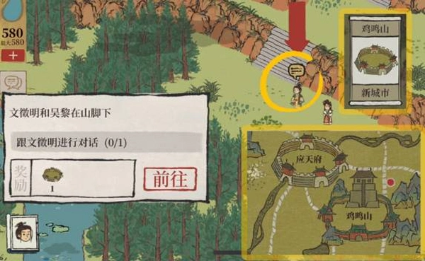 步骤一:前往虎丘,和文徵明、吴黎完成对话后,就能解锁新城市鸡鸣山了。