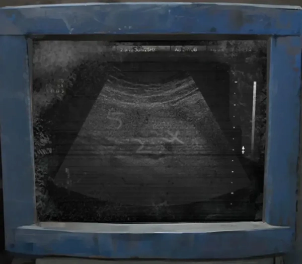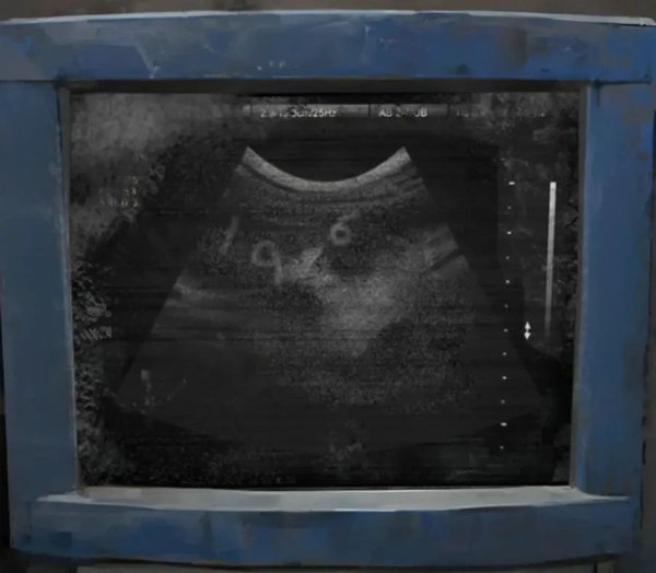 下楼后走廊里的老奶奶已经不见了,她原来站的地方换成了一张遗像。我把之前拿到的【娃娃】放到椅子下面那个画着轮廓的位置,刚放好,唱戏机里就掉出来一个【小人偶】——这模样看着怎么有点眼熟呢!接着走进旁边的房间,把【小人偶】搁在左边柜子的抽屉那儿,抽屉随即掉了下来,我从中拿到了【探头】。之后走到右边的床旁放置探头,调整好角度就开始探查了。