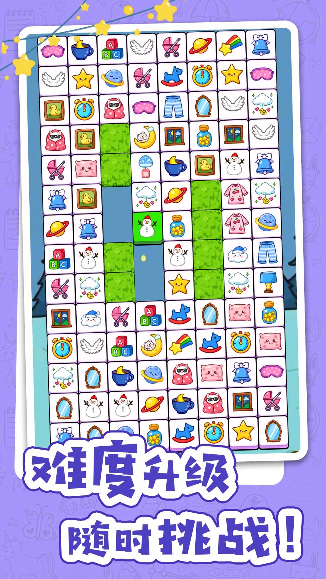 1、在指定区域内找出牌面相同的牌,借助不超过三条直线的路径把它们连接起来,连接成功后就能消除这些牌面,从而推进关卡进度。