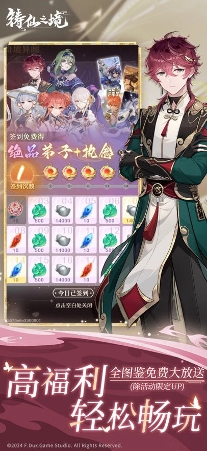 全图鉴弟子(限定除外)签到就能领取,助力师尊执掌修仙学园~