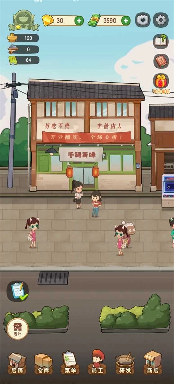 1、真实且丰富的经营维度:从店铺装修、菜品制作到员工管理……全方位还原火锅店的真实运营流程。店内配备丰富多样的设施与食材,还有琳琅满目的菜品和锅底,足以满足天南海北不同食客的口味需求。此外,个性化的个人气泡与互动动作,更能为玩家带来沉浸式的真实开店体验!