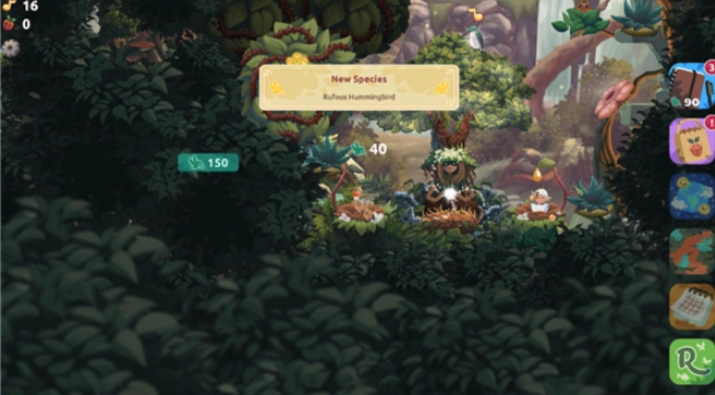 5、成年鸟会定期产出资源,这些资源可用于建造更多鸟巢或者解锁新的植物。