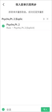 歌曲匹配成功后,点击右下角的“导入”按钮就能完成操作啦。