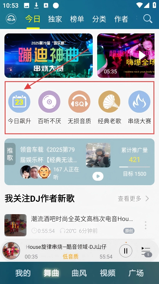 在音乐首页,设有【今日飙升】【百听不厌】等分类入口,点击【今日飙升】,就能浏览当下的热门音乐啦。