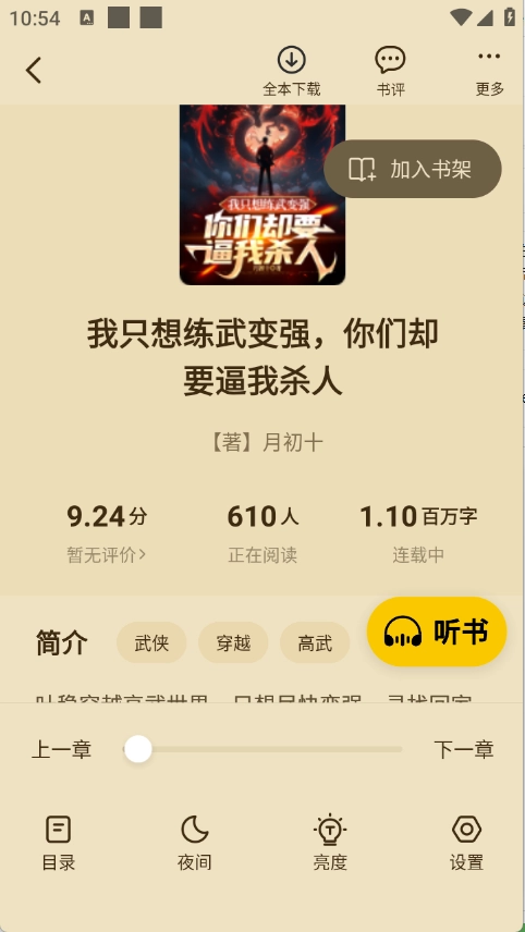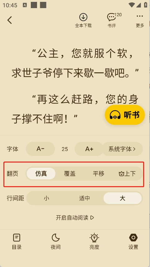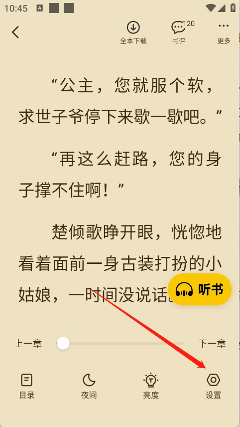 找到想看的小说以后,进入阅读页面,点击“听书”。