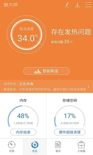 1、手机降温:鲁大师手机版可全方位监测手机温度状况,通过一键操作就能帮您快速解决手机发热的困扰。
