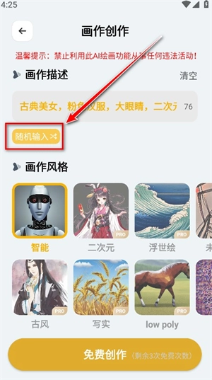 输入画作描述,也可以随机输入。
