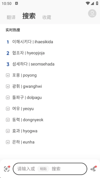 支持韩语、汉字、罗马音输入,能自动识别并一键快速查词,便于不同语言基础的用户使用。