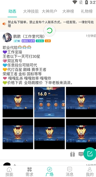1、首先在本站安装好软件后,进入到技能主页面可以看到很多陪玩发布信息