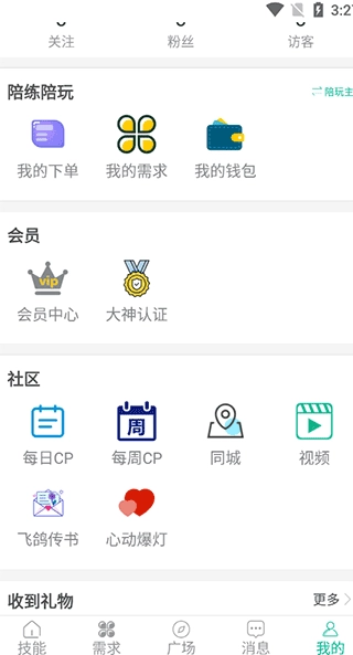 3、接着点击“我的”,在这里能看到寻找cp的入口,同时也能查看自己的订单状态。