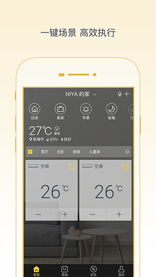 场景可由用户自行设定,还能编辑其他生活场景标签。家电管理方面,实时查看运行数据,便于及时处理故障;智能控制则支持通过一部手机操控家中所有智能产品。