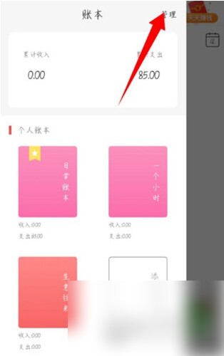 左侧会显示账本列表界面,点击上方的“管理”按钮。