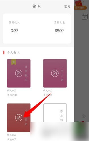 在管理模式下,选择想要删除的个人账本。