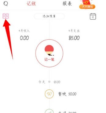 打开有鱼记账应用,点击左上角的账本图标。