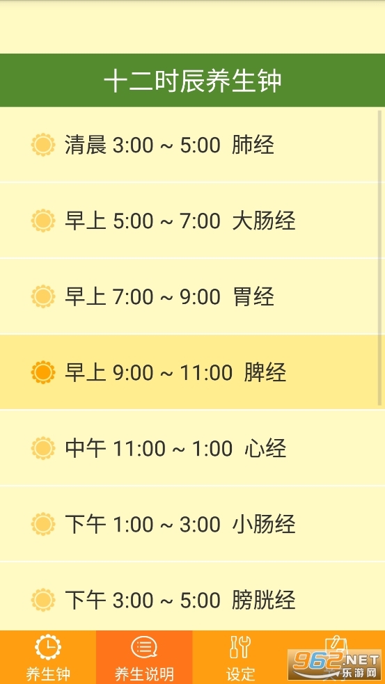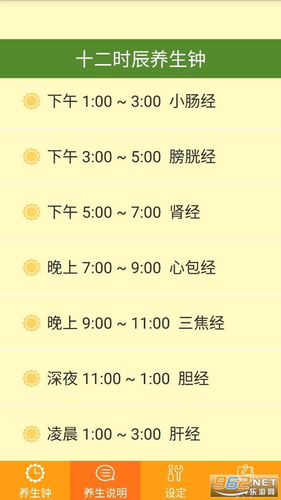 方式,通过时钟的形式来展现。下午1点到3点是小肠经当令的时段,本软件会提醒您:这个时间段适合泡杯茶、多补充水分,这样有助于身体排毒;尤其要注意的是,千万别在这个时段憋尿,否则会对健康造成不良影响。