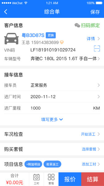 【接车开单】 支持通过车牌、VIN码及行驶证等多种扫码方式开单,洗车单、接车单、综合单是常用的开单类型,一键扫码开单取代传统纸质单,操作更加方便快捷。