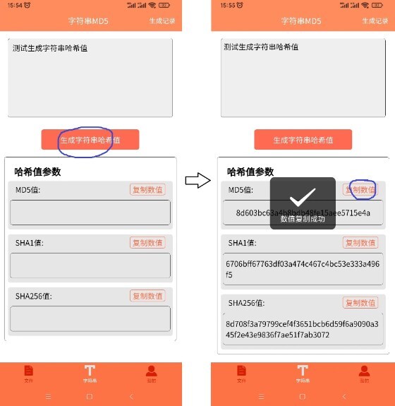 1、点击底部导航条中的字符串,跳转到字符串MD5页面;